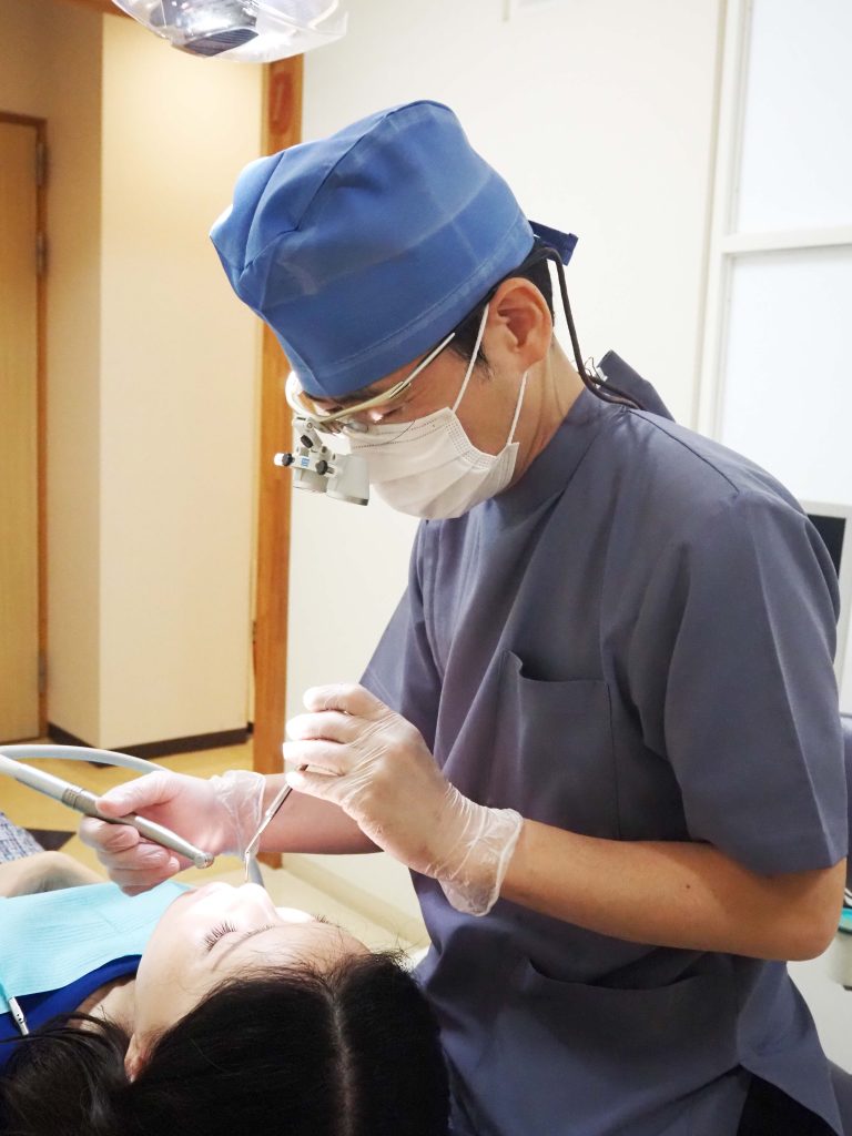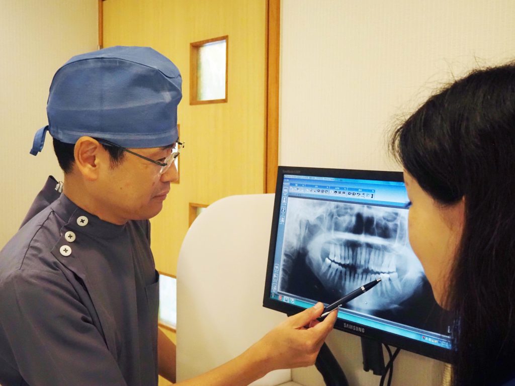 歯科医師の自分が納得のいく治療をするのは言うまでもなく、他の歯科医師から見ても“まっとう”と思われるよう全力を尽くしております。学生の時分に教わった『一口腔一単位』(口の機能に関連するすべてを総合的に治療する考え方です。)を実践すべく1本の歯ではなく口の中全体で診るよう心がけています。いろいろな検査結果から導き出した治療方針については、正確に伝えるだけではなく、診断に至る過程や治療方法の利点・欠点をわかりやすい言葉で理解していただくよう努めております。